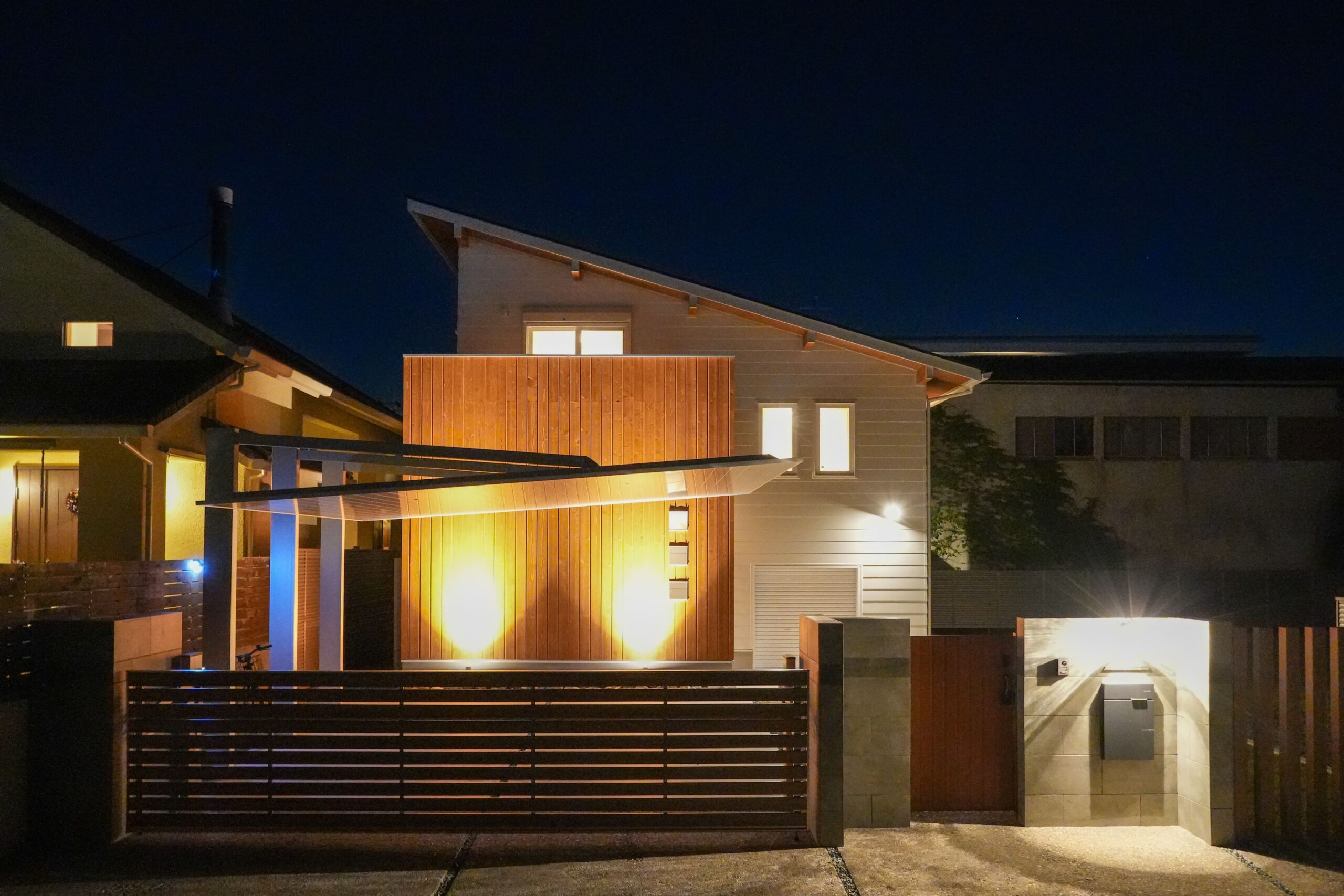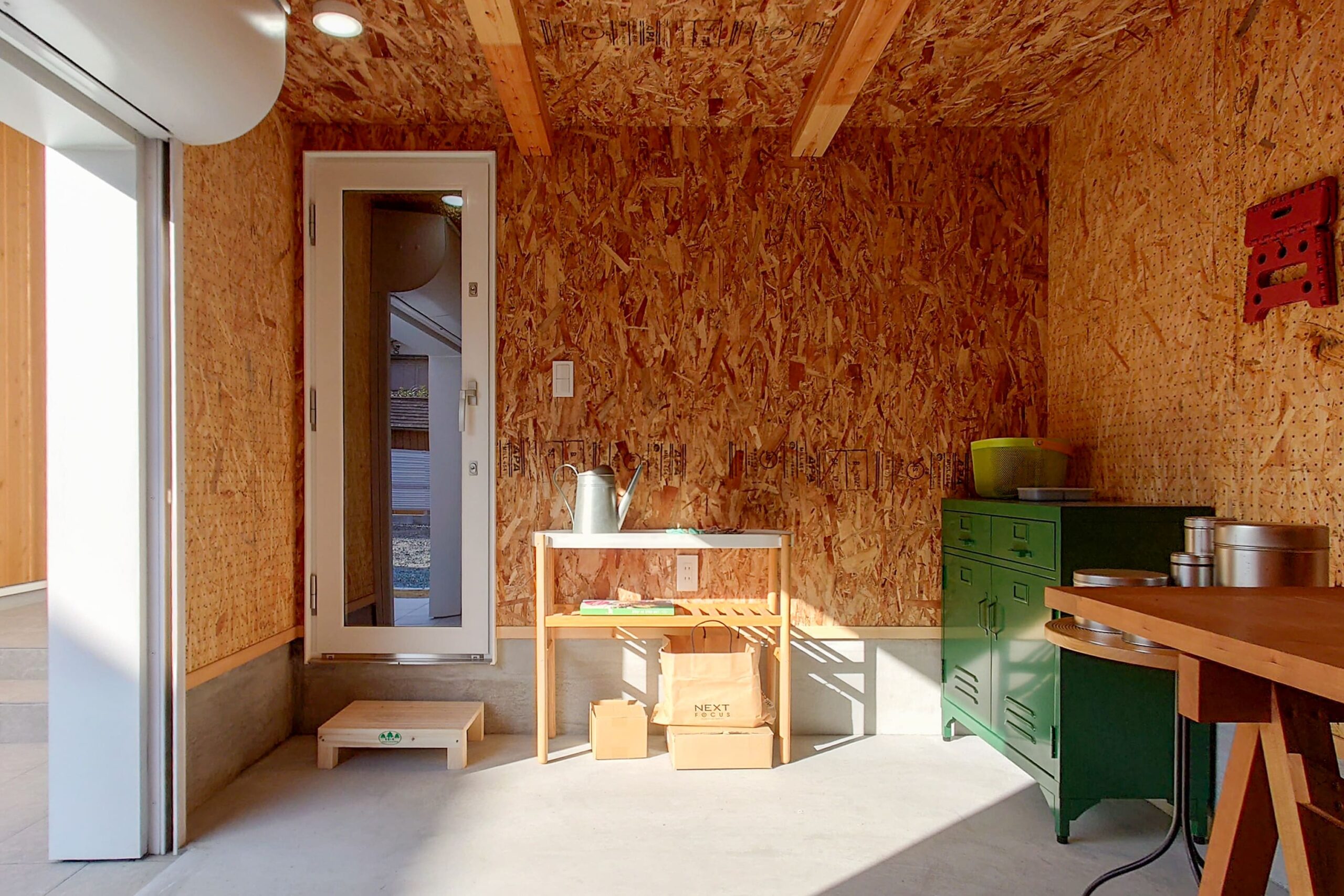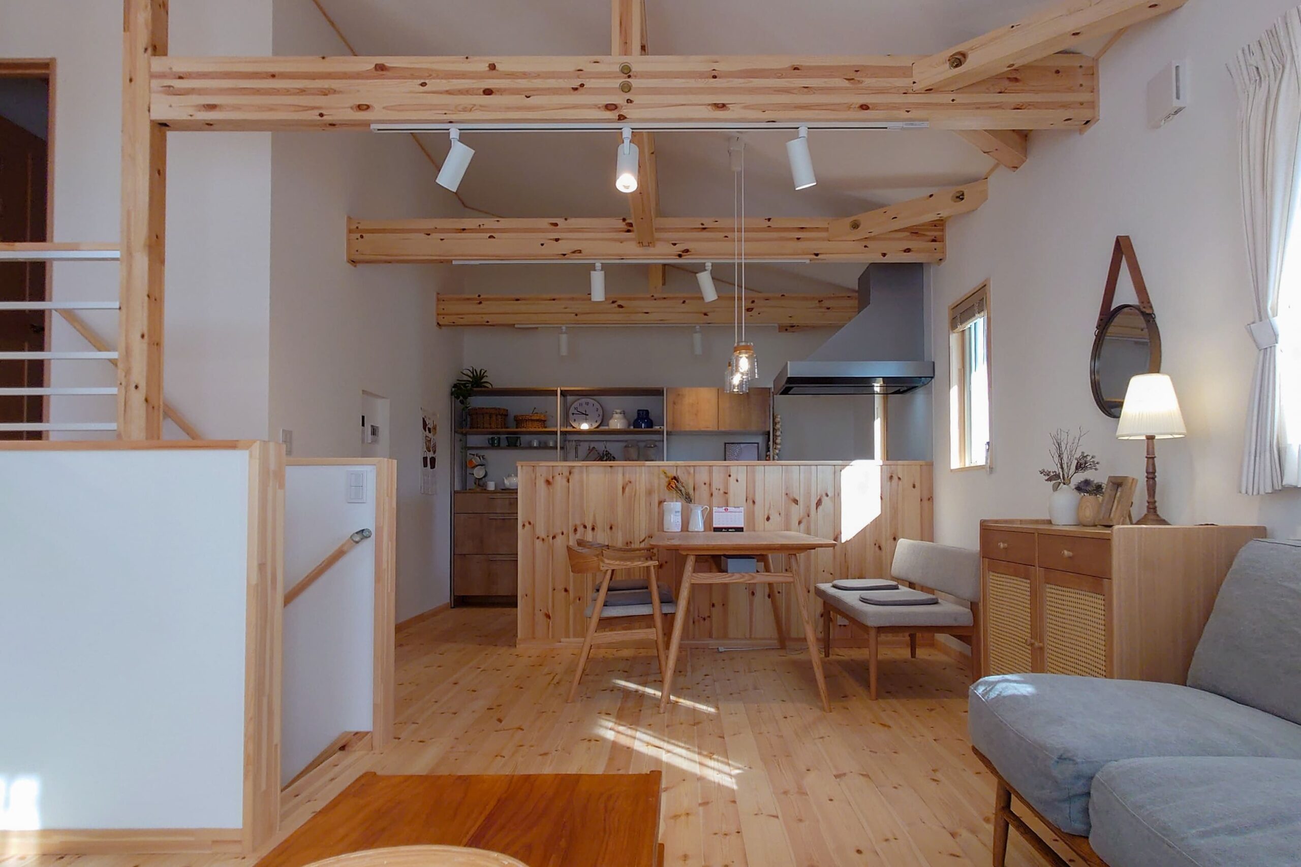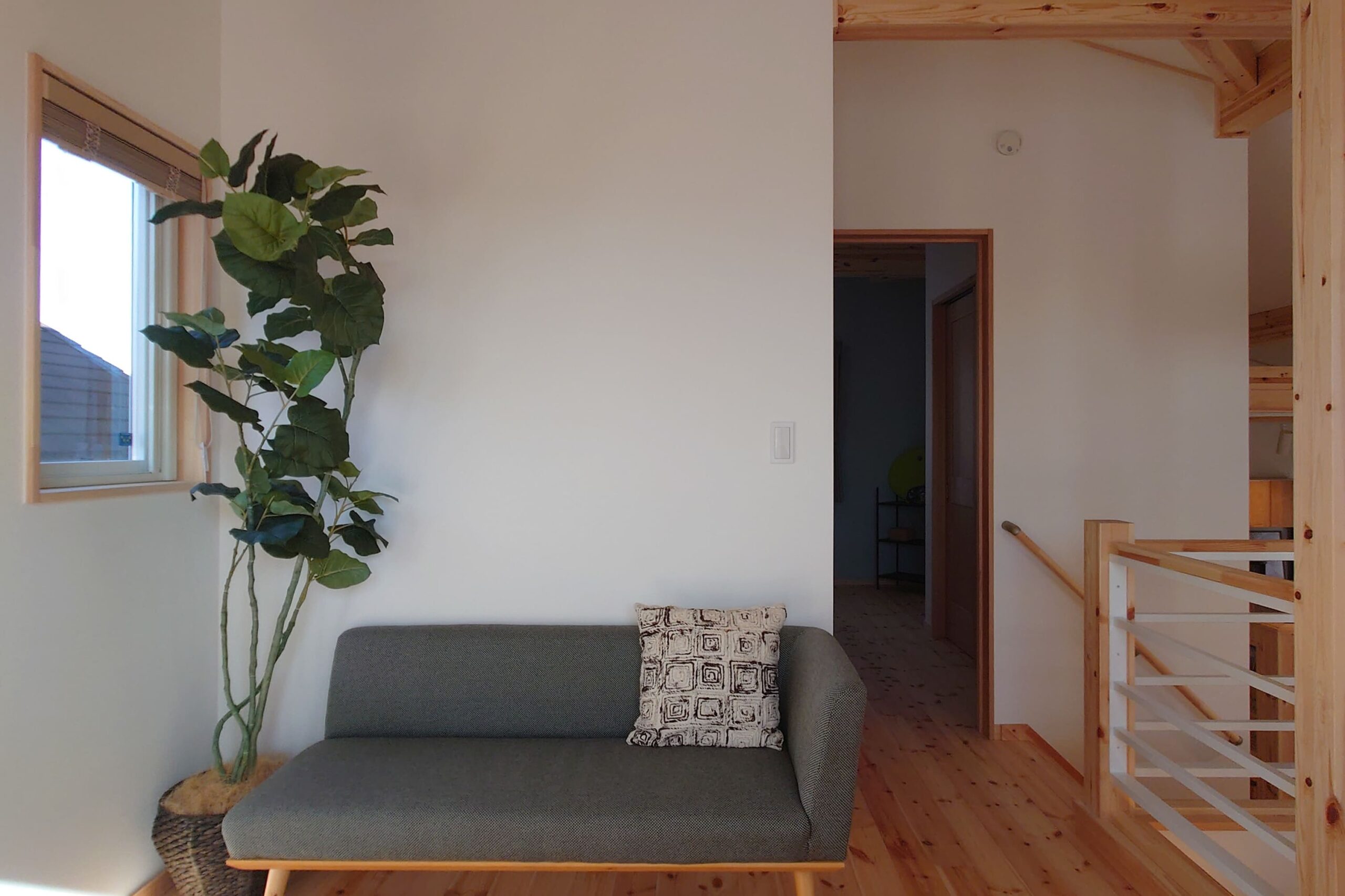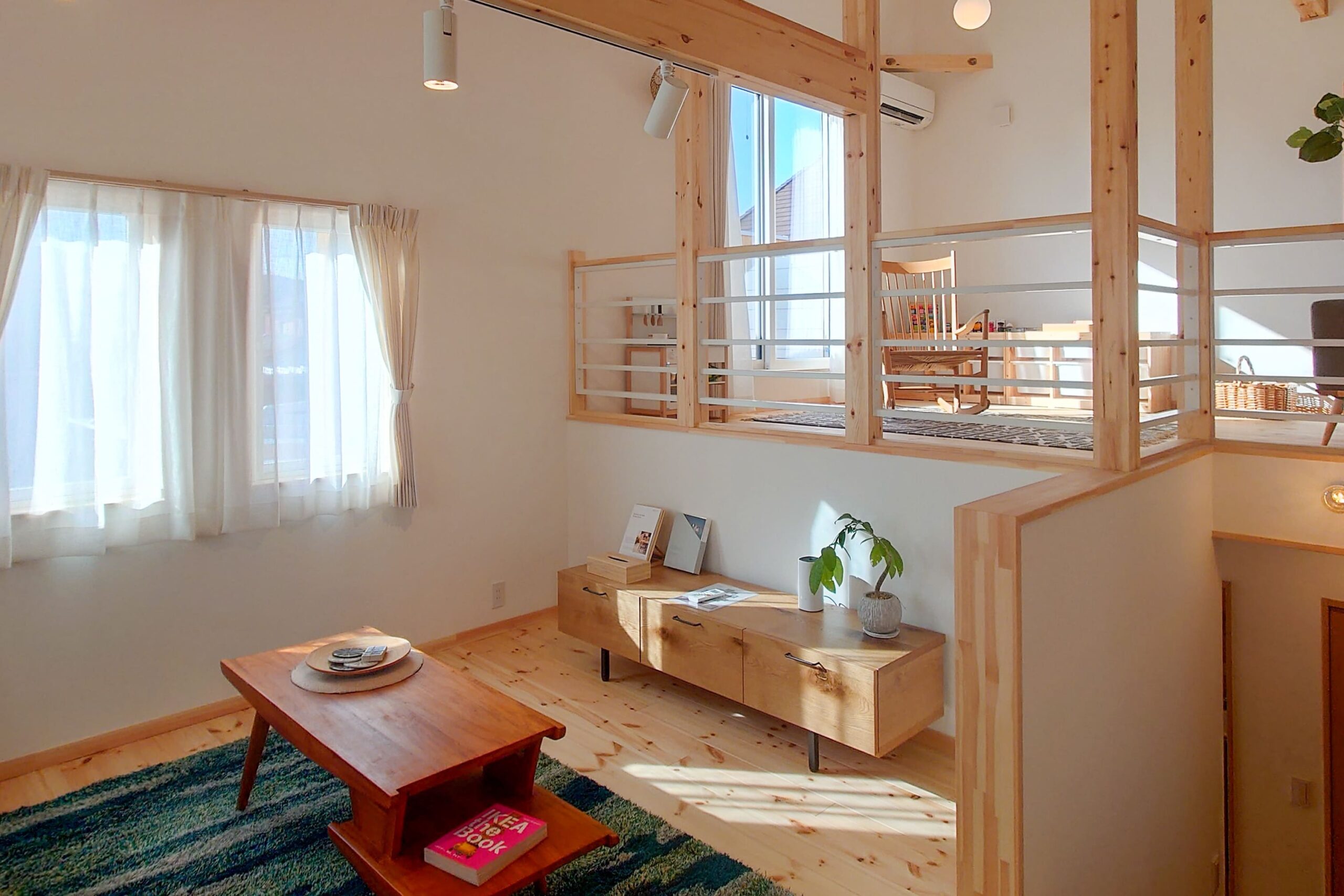 フロアの高低差を利用した、他の構造ではなかなか実現できない、空間の広がりやゆとりを感じられるスキップフロア構造が特徴。明るく開放的な空間で子供たちがのびのびと暮らしています。